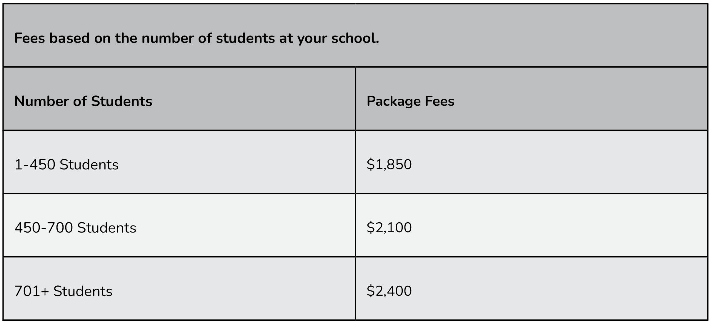 The fees listed below are set through December 2026. Prices reflect the cost for a one-year license.